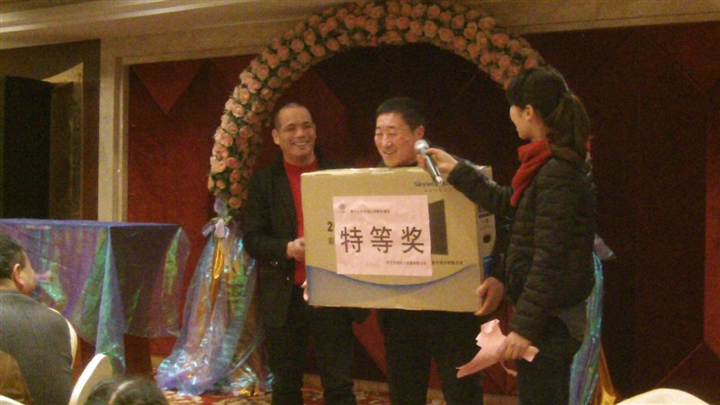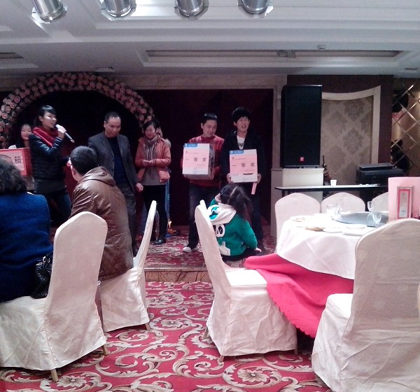 - 2012年12月31日浙江東瑞電力設備有限公司2013年新年酒會在柳市香格來拉大酒店隆重舉行!酒會分為三個環(huán)節(jié)進行:公司領導致詞、抽獎活動、員工聚餐。圖為銷售部胡工做重要講話:在酒會抽獎環(huán)節(jié)中,全場氣氛達到高潮。圖為公司董事長為特等獎幸運兒頒獎及獲獎員工發(fā)表感言:圖為一等獎幸運兒產時刻:圖為員工聚餐: