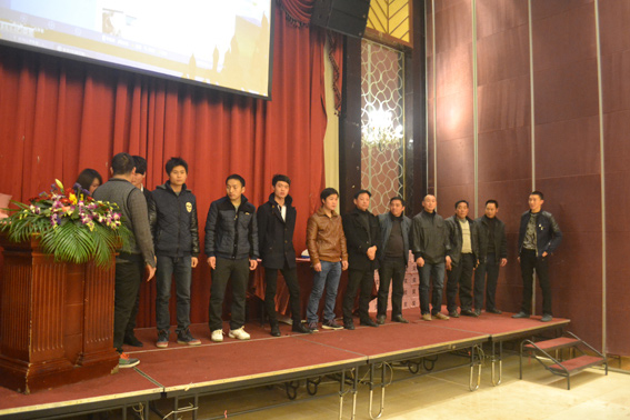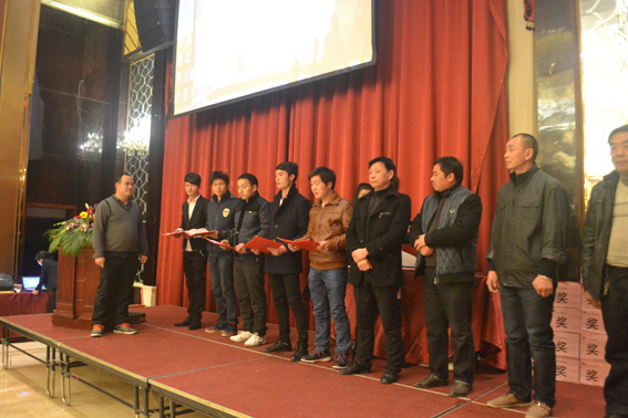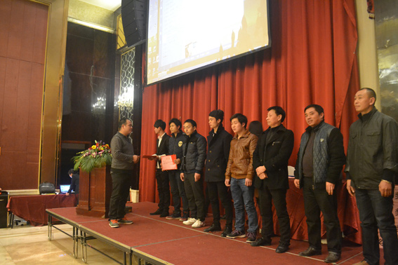 圖為生產(chǎn)部副總徐總,銷售副總胡總為二零一三年度先進員工及先進班組長頒獎